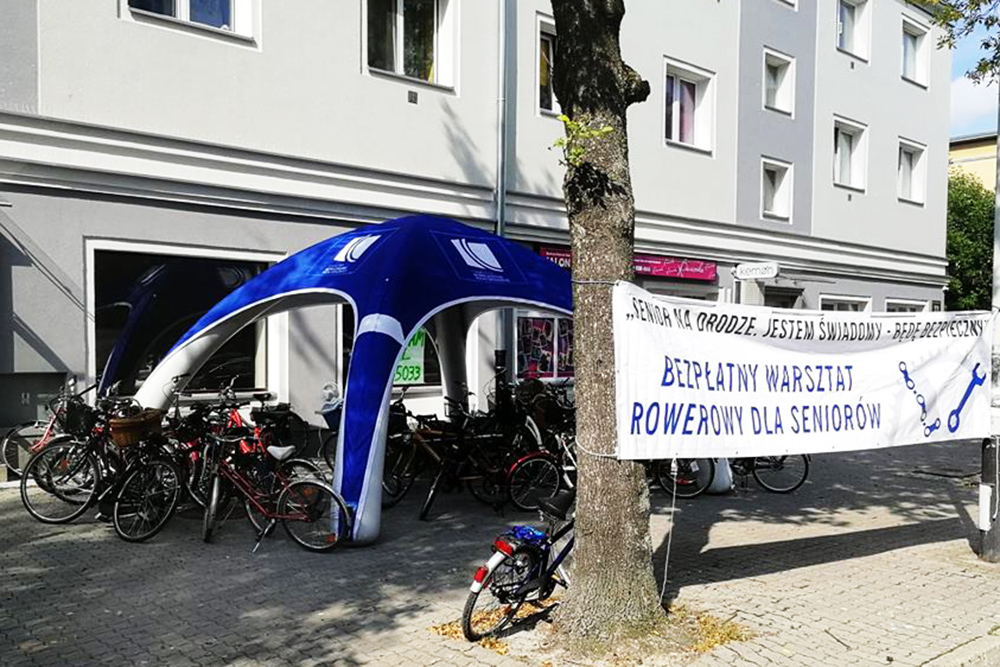 Równocześnie działał bezpłatny serwis rowerowy. Dokonano przeglądu stanu technicznego 52. rowerów. Wykonano regulacje i drobne naprawy, pojazdy doposażono w dzwonki, elementy oświetlenia i odblaski.