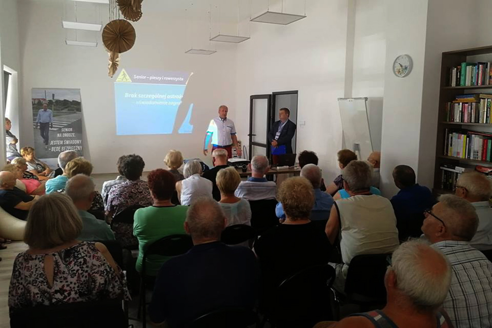 Organizatorzy: Ministerstwo Infrastruktury, Krajowa Rada Bezpieczeństwa Ruchu Drogowego we współpracy z Policja oraz partnerem lokalnym – Miejskim Domem Kultury w Stalowej Woli zaprosili pieszych i rowerzystów reprezentujących grupę wiekową 60+. Udział wzięły 74. osoby, w tym 52 rowerzystów. Zajęcia prowadził ekspert brd Mariusz Sztal, mówił o zagrożeniach na drodze, o wypadkach z udziałem seniorów oraz o tym jak bezpiecznie uczestniczyć w ruchu drogowym. Seniorzy rozmawiali z przedstawicielem lokalnej policji, st. sierż. Katarzyną Wieczorek. Z zainteresowaniem przyjęto prezentację dyrektora Wojewódzkiego Ośrodka Ruchu Drogowego w Tarnobrzegu Marka Ożgi, który także obdarował uczestników opaskami i kamizelkami odblaskowymi.