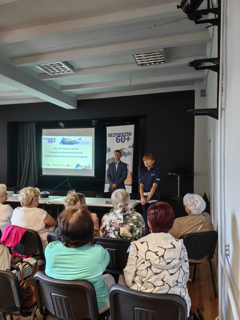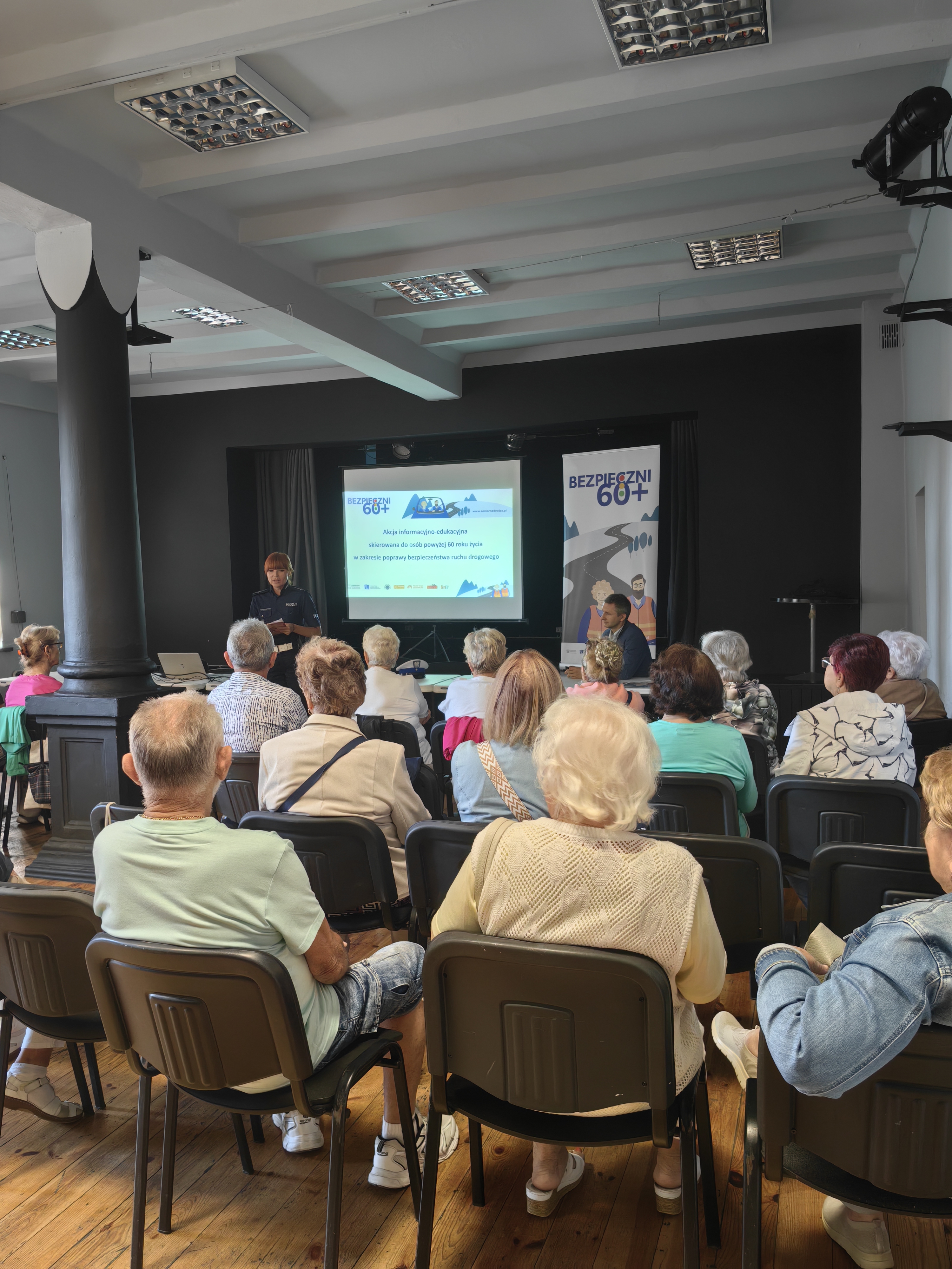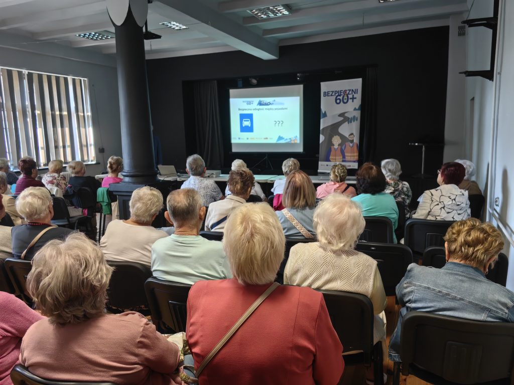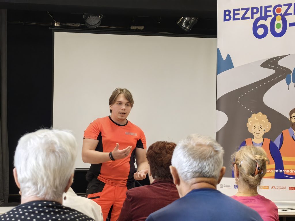 W trakcie wykładu, który poprowadził ekspert w zakresie bezpieczeństwa ruchu drogowego – Mariusz Grzesica, swoją wiedzą i doświadczeniem podzieliła się również mł. asp. Barbara Pluta z Komendy Wojewódzkiej Policji w Katowicach. Policjantka aktywnie włączała się w dyskusję, z zaangażowaniem odpowiadając na pytania prowadzącego dotyczące bezpieczeństwa w ruchu drogowym oraz lokalnych zagrożeń, z jakimi na co dzień mierzą się uczestnicy dróg. W swojej wypowiedzi zwróciła szczególną uwagę na problematykę wypadków z udziałem osób starszych, jakie miały miejsce na drogach powiatu będzińskiego, podkreślając, jak istotne jest podnoszenie świadomości w tym zakresie.