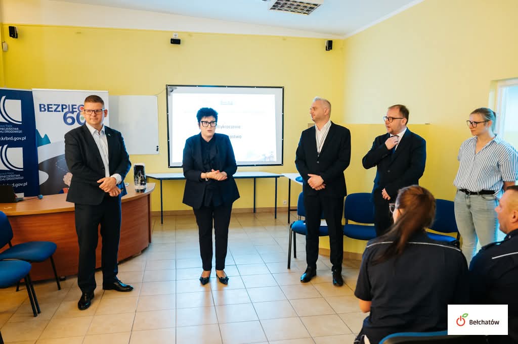 Spotkanie otworzył Pan Konrad Romik – Sekretarz Krajowej Rady Bezpieczeństwa Ruchu Drogowego, który podziękował uczestnikom za obecność oraz podkreślił znaczenie ich aktywności i zaangażowania. Zaznaczył, że tego typu inicjatywy mają kluczowe znaczenie dla poprawy bezpieczeństwa w ruchu drogowym, a wymiana doświadczeń oraz przekazywanie wiedzy w bezpośrednim kontakcie jest jedną z najskuteczniejszych form edukacji. Wśród zaproszonych gości obecni byli również: Pan Wojciech Piasecki – Wiceprezydent Miasta Bełchatowa, Pani Agnieszka Ludwiczak-Maszewska – Wiceprezydent Miasta Bełchatowa, Pan Michał Gogolewski – Sekretarz Wojewódzkiej Rady Bezpieczeństwa Ruchu Drogowego oraz Dyrektor Wojewódzkiego Ośrodka Ruchu Drogowego w Łodzi, Pan Zdzisław Maciągowski – Zastępca Dyrektora Wojewódzkiego Ośrodka Ruchu Drogowego w Łodzi, Pan Maciej Wisławski – polski pilot i kierowca rajdowy. Nad merytorycznym i praktycznym wymiarem warsztatów czuwali także przedstawiciele lokalnej Policji: podinsp. Piotr Stańczuk i st. asp. Łukasz Jurczyk z KPP w Bełchatowie oraz sierż. szt. Paulina Trochimiak z KWP w Łodzi, którzy na co dzień dbają o bezpieczeństwo mieszkańców gminy.