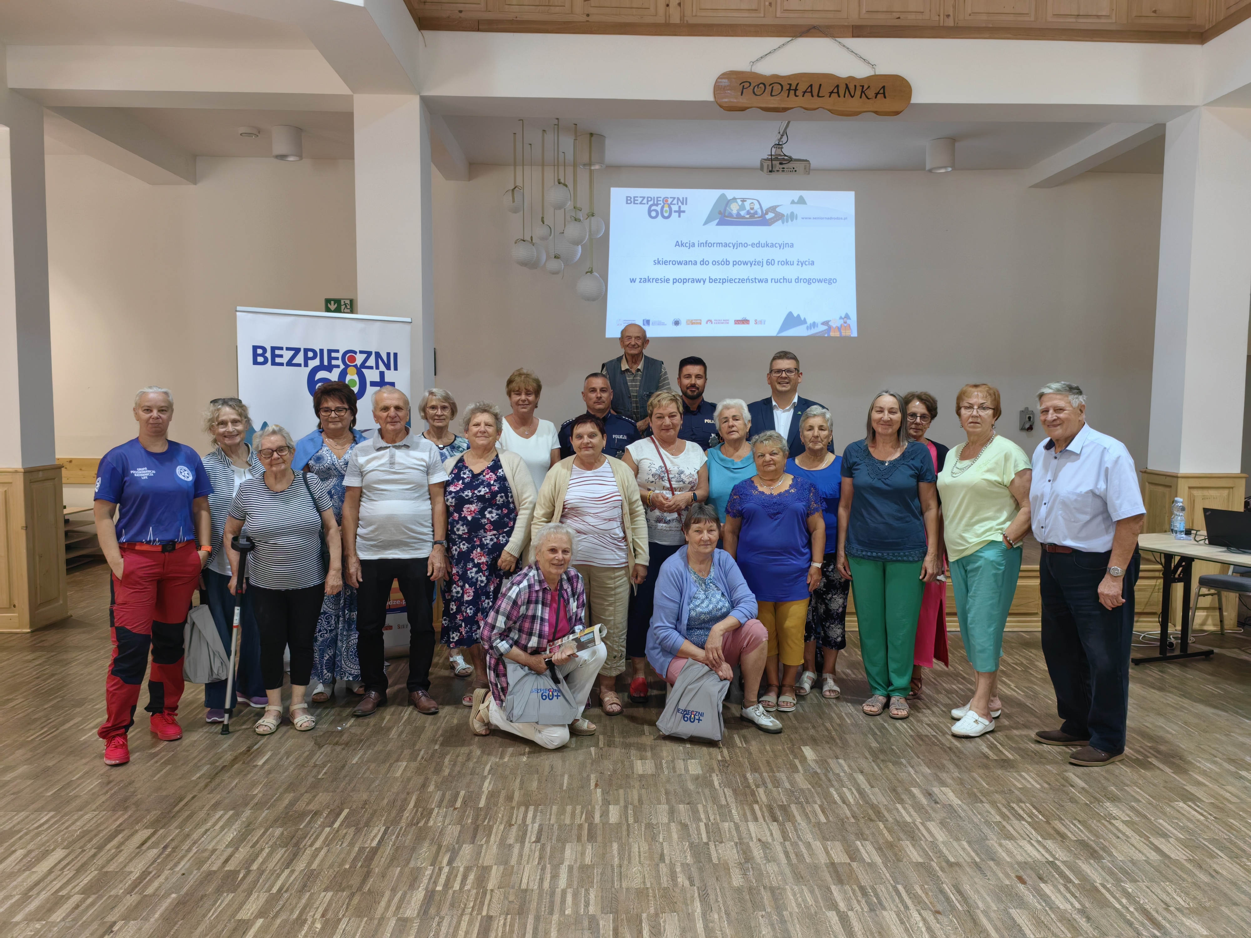 21 sierpnia 2025 r. w sali „Podhalanka” w Krosnowicach odbył się kolejny warsztat bezpieczeństwa ruchu drogowego w ramach ogólnopolskiej akcji informacyjno – edukacyjnej Bezpieczni 60+.