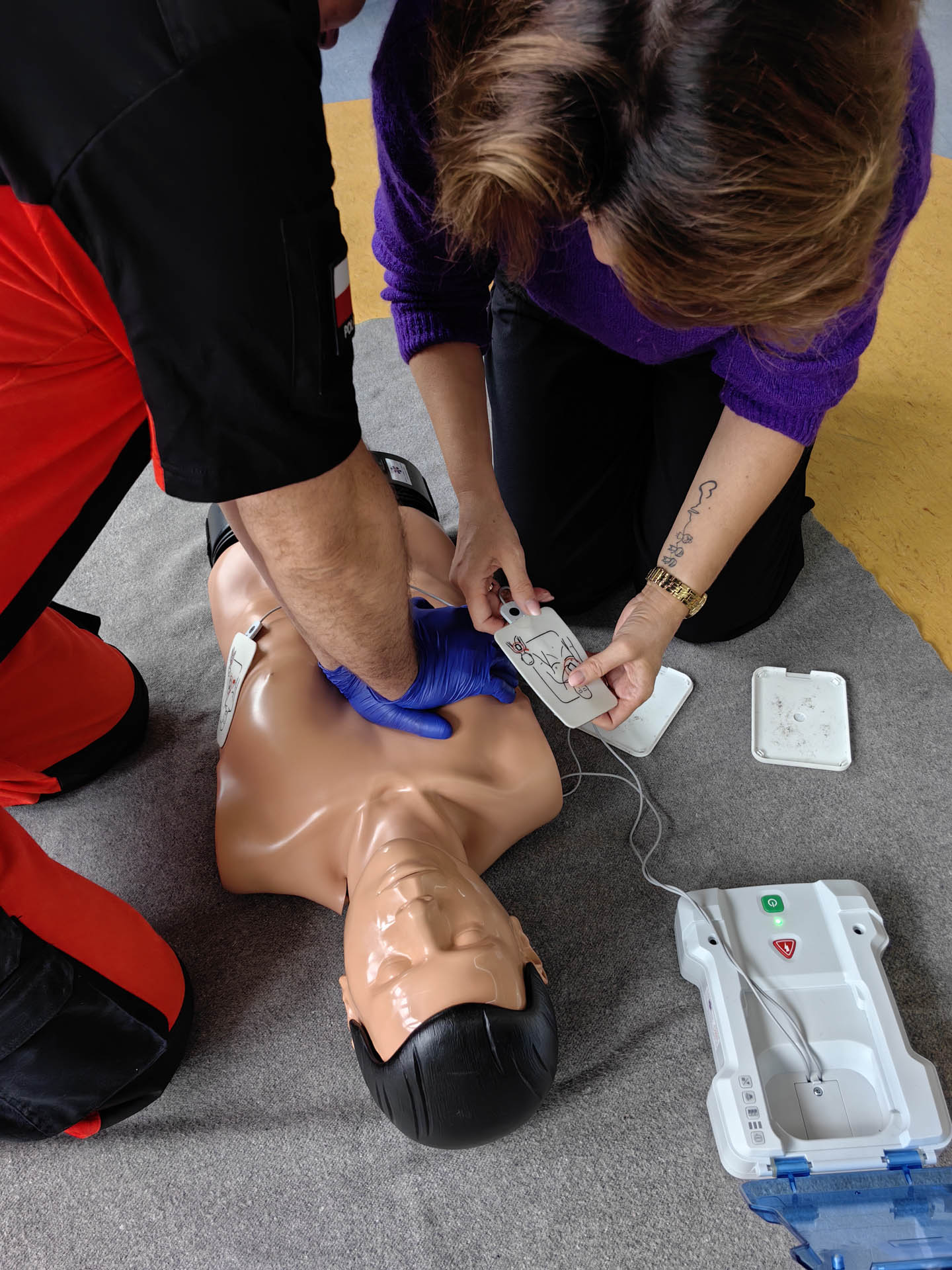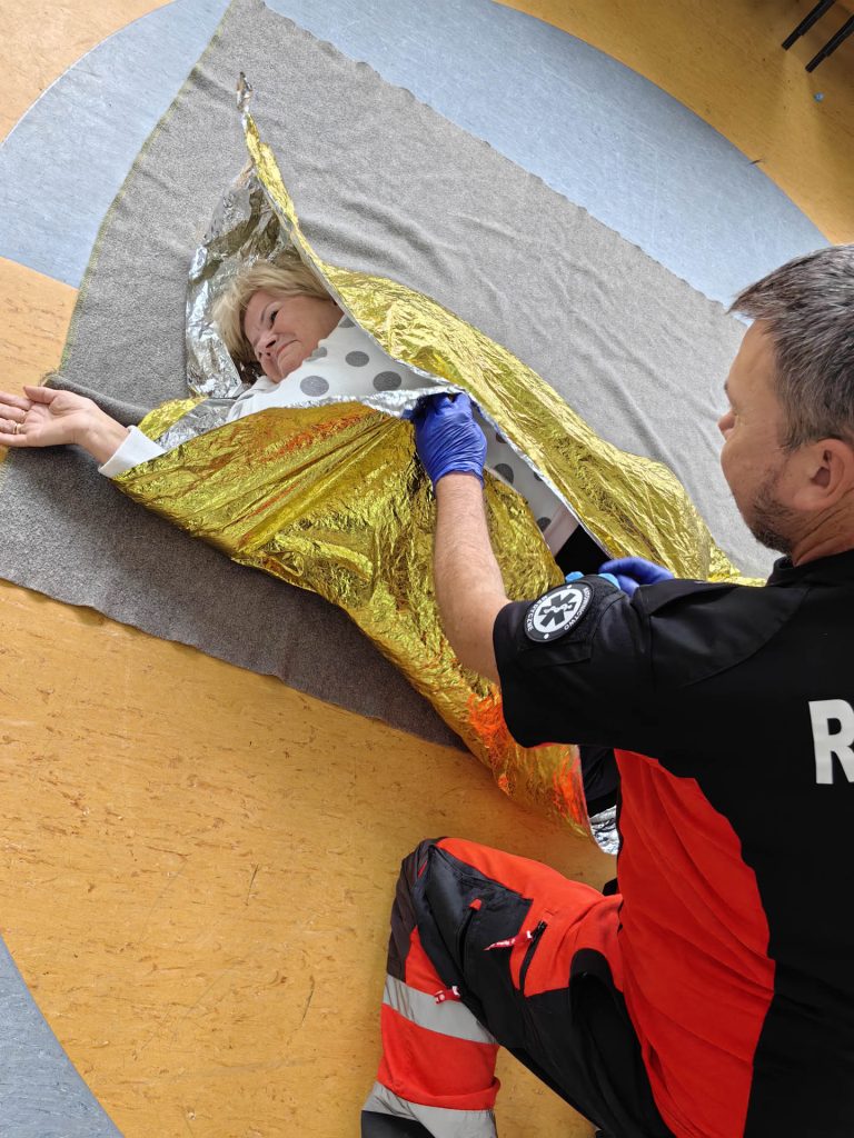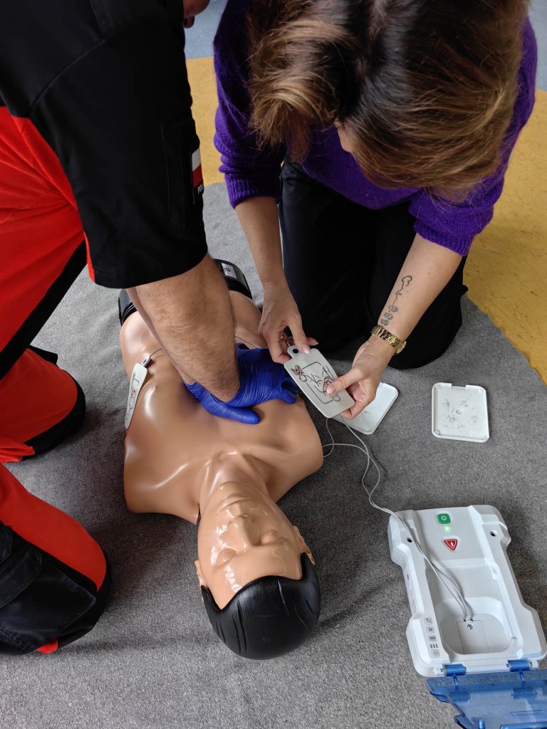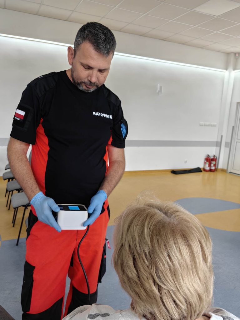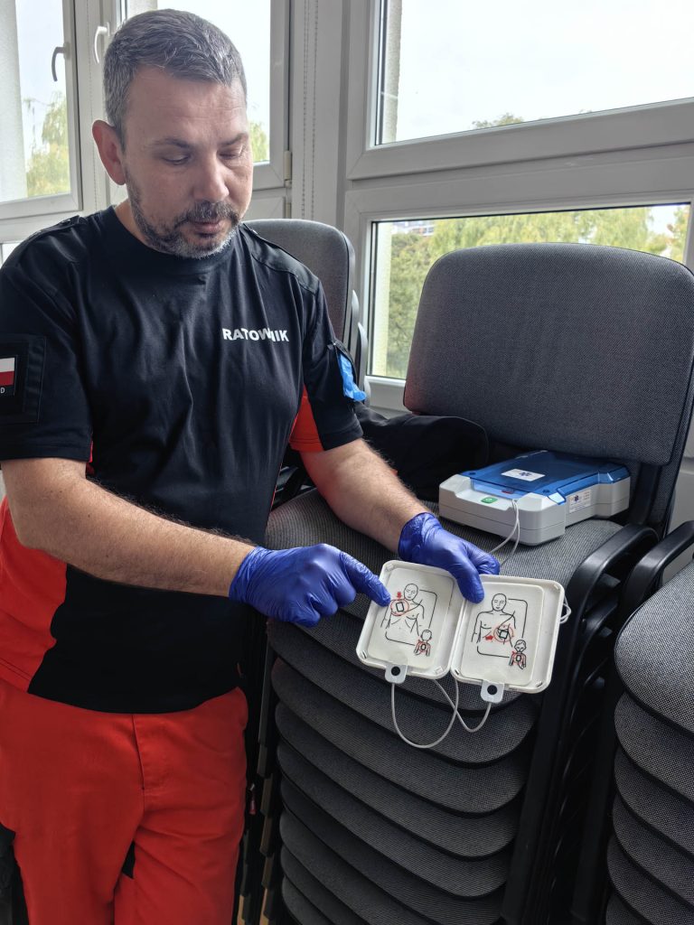 Pod kierunkiem wykwalifikowanego instruktora uczestnicy mieli również możliwość wzięcia udziału w szkoleniu z udzielania pierwszej pomocy przedmedycznej. Ćwiczenia praktyczne prowadzone z użyciem fantoma i defibrylatora AED pozwoliły na zdobycie zarówno wiedzy, jak i praktycznych umiejętności niezbędnych do ratowania życia w sytuacjach zagrożenia.